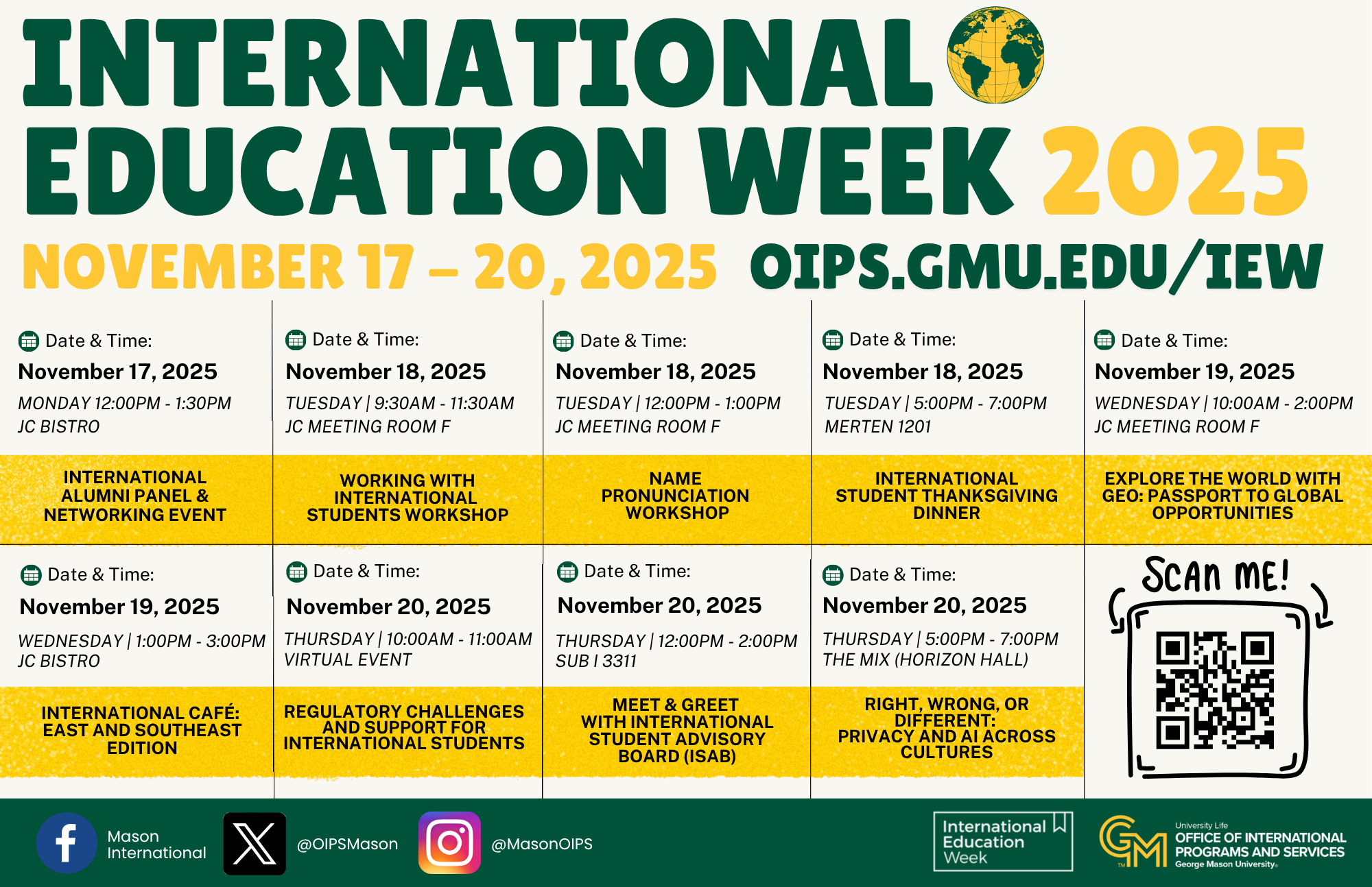 Come celebrate, connect, and discover the world right here on campus during International Education Week 2025!