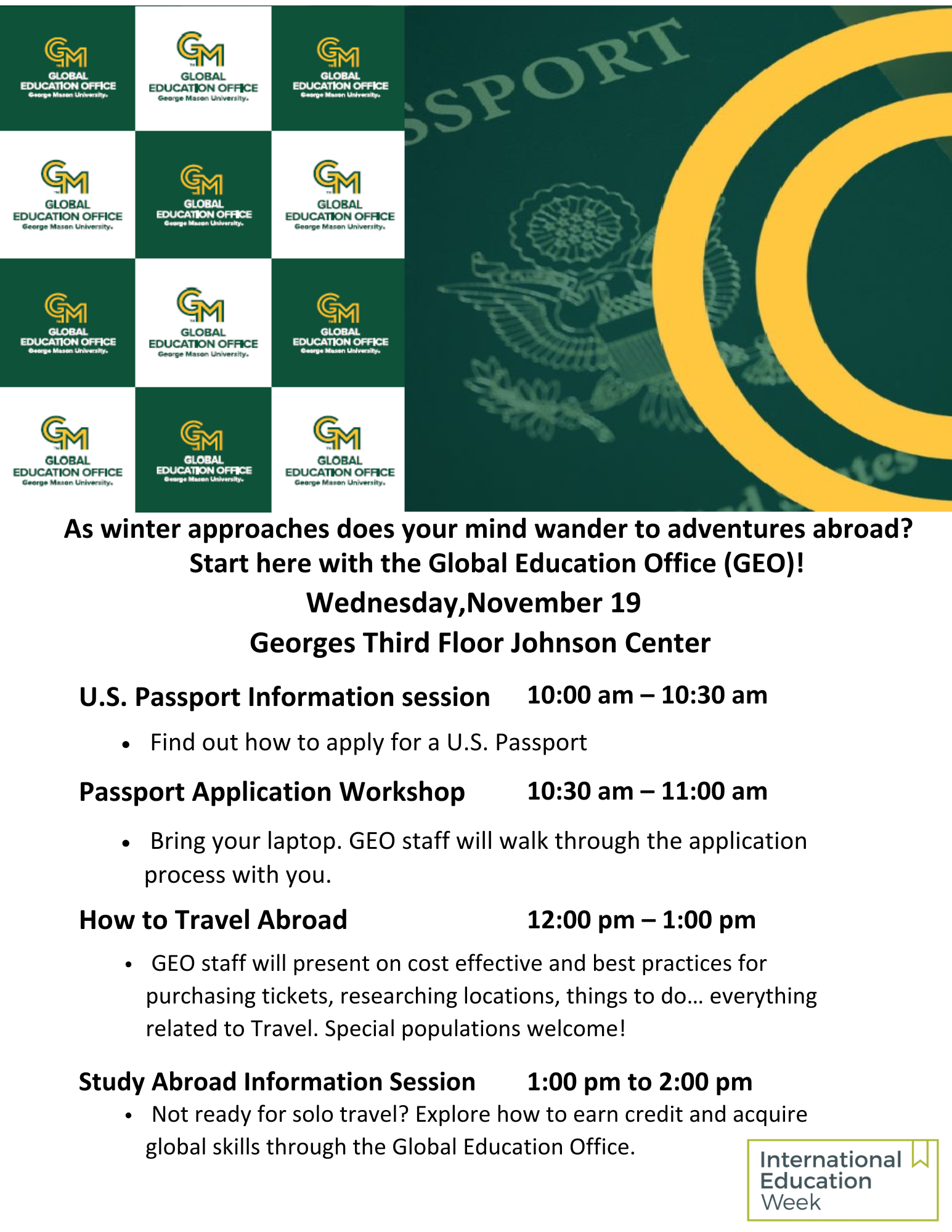 Join us to learn how to apply for a U.S. passport, get travel planning tips, and explore study abroad opportunities.